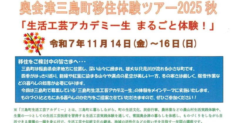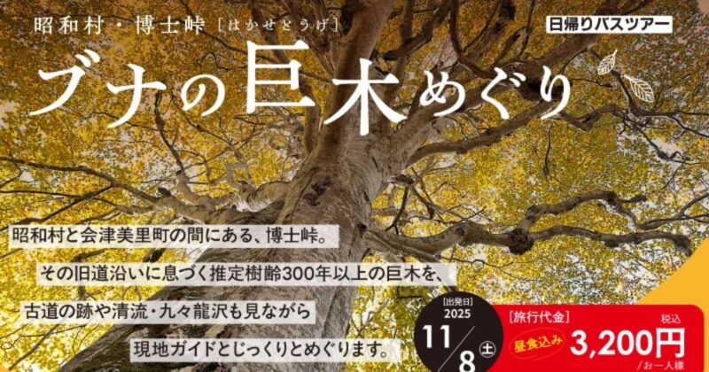 全て 柳津町三島町金山町昭和村只見町南会津町檜枝岐村奥会津全域奥会津商店 南会津町 【南会津町】唐倉山山開きを開催いたします! 2025.10.16 南会津町 自然体験 金山町 【ダム好き必見!】2026年3月15日(日)まで 写真展「ダムと… 2025.10.10 伝言板 金山町 金山町 2026年3月15日(日)まで 企画展「〜阿賀野川・只見川電源開… 2025.10.10 伝言板 金山町 金山町 【かねやま小学校コラボ企画】2025年12月14日(日)まで 絵… 2025.10.10 伝言板 金山町 南会津町 【南会津町】地酒で乾杯しナイト~花泉酒造編~ 参加者募集中! 2025.10.08 体験 南会津町 柳津町 【柳津町】「圓藏寺コンサート」スギテツwith弦楽アンサンブルの… 2025.10.07 みる 柳津町 三島町 【三島町】歴史と高姫伝説の峠道を歩く トレッキング開催! 2025.10.06 三島町 自然体験 只見町 【只見町】ただみの森キャンプ場「秋の感謝祭」開催のお知らせ 2025.10.02 グルメ 只見町 三島町 【三島町】かしゃ猫トレッキング開催! 2025.10.01 三島町 自然体験 昭和村 【昭和村】博士峠 ブナの巨木めぐり日帰りバスツアー 2025.09.29 みる 体験ツアー 昭和村 三島町 【三島町】2025年 沼田街道トレッキング開催 2025.09.27 三島町 体験 金山町 【金山町】第11回かぼまるしぇ開催 2025.09.27 グルメ 金山町 柳津町 【柳津町】秋の只見線チョイ乗り体験ツアー 2025.09.26 体験ツアー 柳津町 三島町 【三島町】移住体験ツアー 2025年秋 2025.09.25 三島町 体験ツアー 金山町 【金山町】奥会津ごっつおまつりが開催! 2025.09.25 グルメ 金山町 檜枝岐村 【檜枝岐村】第14回尾瀬書展の結果発表と作品展覧会について 2025.09.24 みる 檜枝岐村 檜枝岐村 【檜枝岐村】会津駒ケ岳のハイカーと湿原を守るため安全な”木道”を… 2025.09.20 お知らせ 檜枝岐村 金山町 【金山町】ミニ写真展開催中!ダム愛が切り撮る、只見線の四季。 2025.09.18 イベント 金山町 柳津町 【柳津町】九月堂おこもりタイアップイベント「宵よい祭り」 のご案… 2025.09.17 お祭り 柳津町 只見町 【只見町】錦秋の奥会津リフレッシュツアーのご案内 2025.09.14 体験ツアー 只見町 柳津町 【柳津町】 「九月堂おこもり 奉納仮装踊り」についてのお知らせ 2025.09.12 みる グルメ 柳津町 檜枝岐村 【檜枝岐村】第12回山人秋まつり開催のお知らせ 2025.09.11 グルメ 檜枝岐村 自然体験 只見町 【只見町】大迫力!「田子倉ダム見学ツアー」のご案内 2025.09.11 みる 只見町 見学ツアー 只見町 【只見町】自然首都只見「水の郷うまいもんまつり」が開催! 2025.09.10 お祭り グルメ 只見町 柳津町 【柳津町】福満虚空蔵菩薩圓藏寺「福が満ちる御祈祷・朝粥・お宝特別… 2025.09.09 体験ツアー 柳津町 檜枝岐村 【檜枝岐村】特集!尾瀬と檜枝岐の紅葉スポット 2025.09.06 みる 檜枝岐村 柳津町 【柳津町】「瀞流の宿かわち」身体を癒す発酵ランチスタート! 2025.09.04 グルメ 柳津町 昭和村 【昭和村】ガクチカproject ~学んで楽しい!近くてうれしい… 2025.09.03 体験 学ぶ 昭和村 南会津町 【南会津町】第17回南会津新そばまつり開催決定! 2025.09.02 グルメ 南会津町 三島町 【三島町】「スターウォッチングツアー2025~ミサカノヨゾラ~」… 2025.08.22 みる 三島町 自然体験 奥会津全域 【奥会津イベント】8月28日”奥”会津の地域産品集結!「奥会津市… 2025.08.18 イベント 只見町 【只見町】特別企画「幕末・西軍ゆかりの品々展」および「河井継之助… 2025.08.17 みる 只見町 南会津町 【南会津町】たかつえそば畑の花の見ごろについて 2025.08.15 みる 南会津町 檜枝岐村 【檜枝岐村】第40回歌舞伎の夕べ開催! 2025.08.13 みる 檜枝岐村 三島町 【三島町】お盆期間中のものづくり体験のご案内 2025 2025.08.02 三島町 体験 柳津町 【柳津町】「第88回霊まつり流灯花火大会有料観覧席」お申込み締切… 2025.08.01 柳津町 花火大会