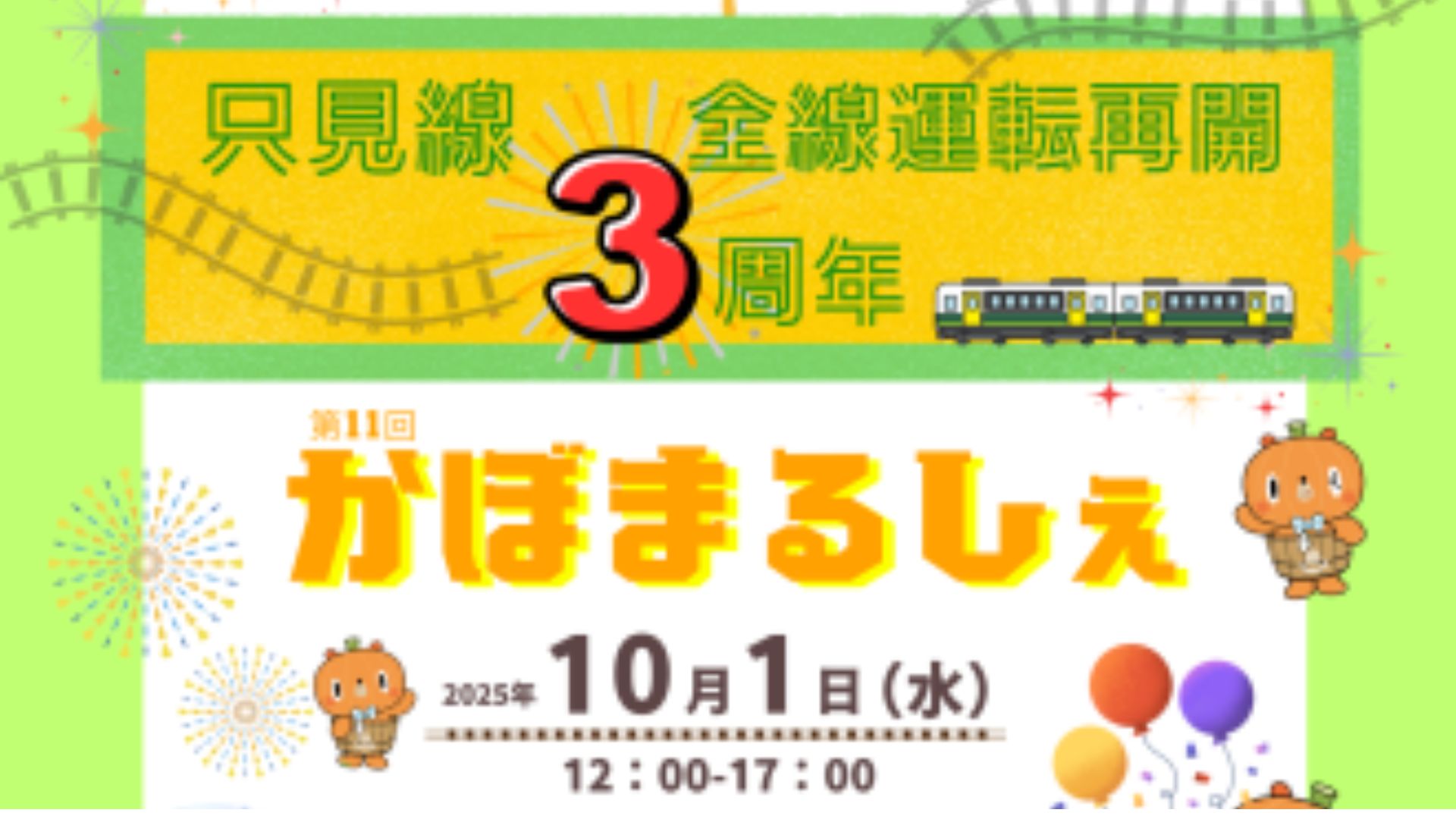 金山町 2025.09.27 グルメ 金山町 【金山町】第11回かぼまるしぇ開催 只見線全線運転再開3周年を迎える2025年10月1日!\第11回かぼまるしぇを開催します/日時:2025年10月1日(水)12:00~17:00場所:JR只見線会津川口駅前「おもいでのれもんじゃむ」を使用したレモネードや、かぼまる焼きの他、前回大好評の「奥会津タコス」も販売します!只見線全線運転再開3周年記念号の運行もあるので、みなさんで一緒に盛り上げましょう~♪Tweet 前の記事へ 奥会津伝言板 TOP 次の記事へ