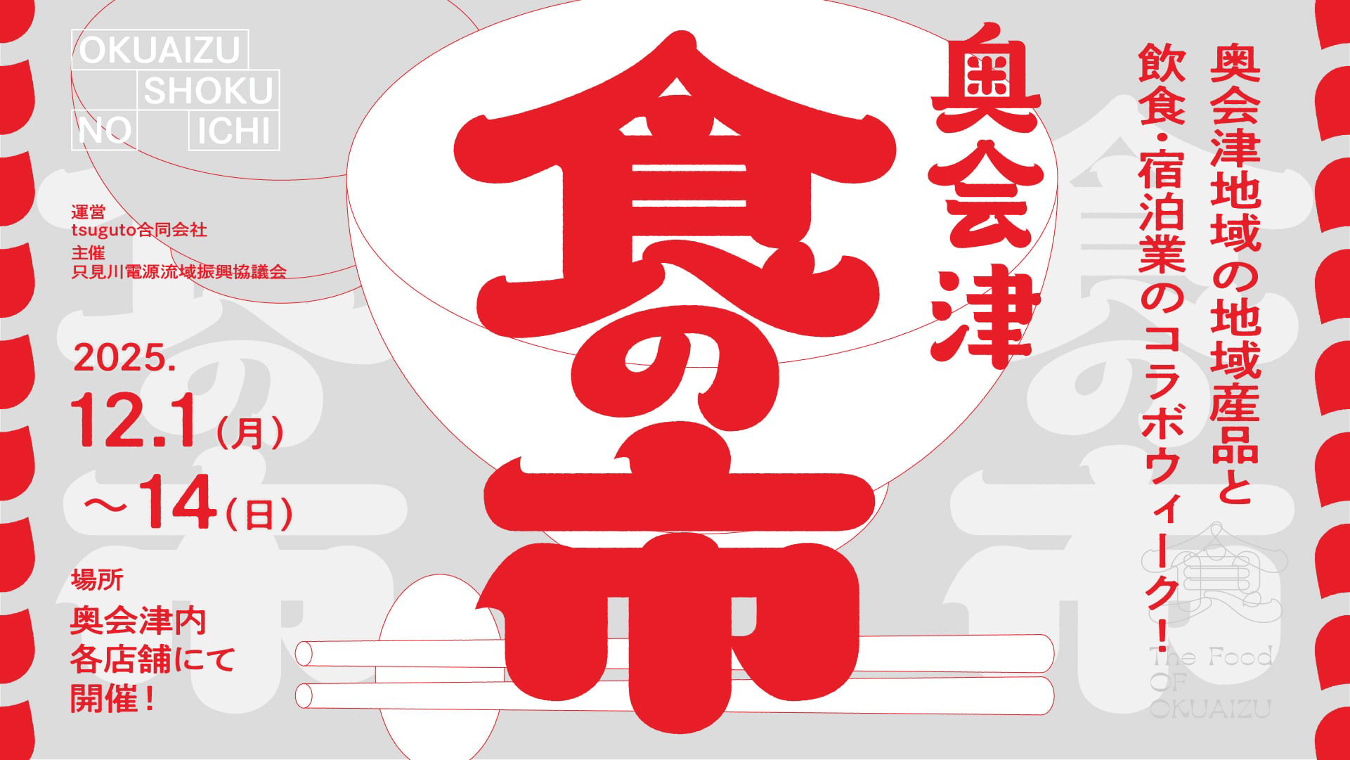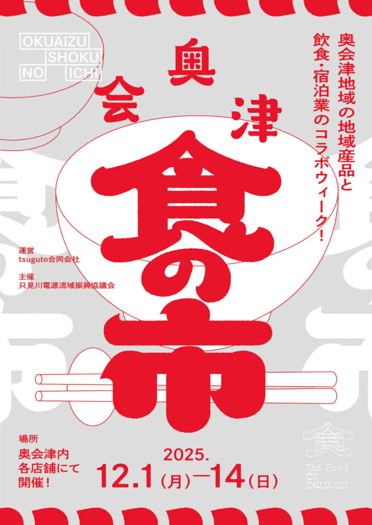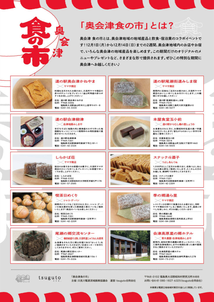 奥会津 食の市とは、奥会津地域の地域産品と飲食・宿泊業のコラボイベントです!12月1日(月)から12月14日(日)までの2週間、奥会津地域内のお店やお宿で、いろんな奥会津の地域産品をお楽しみいただけます。