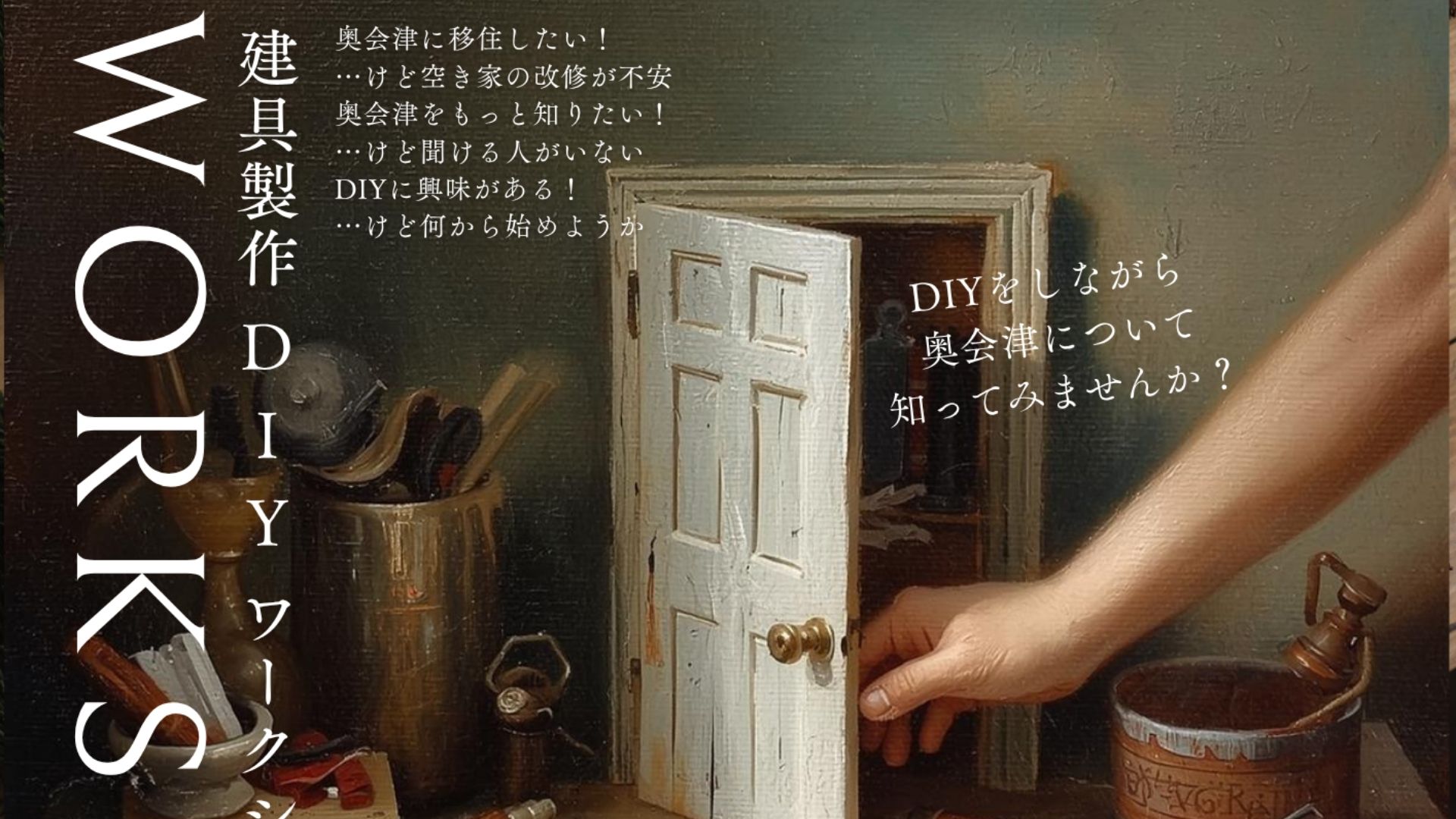 DIYに興味がある方、DIYが好きな方、奥会津に興味がある方など、DIY初心者にも分かりやすく、奥会津のことをもっと知ることができるワークショップを開催いたします。(事前申し込み制)