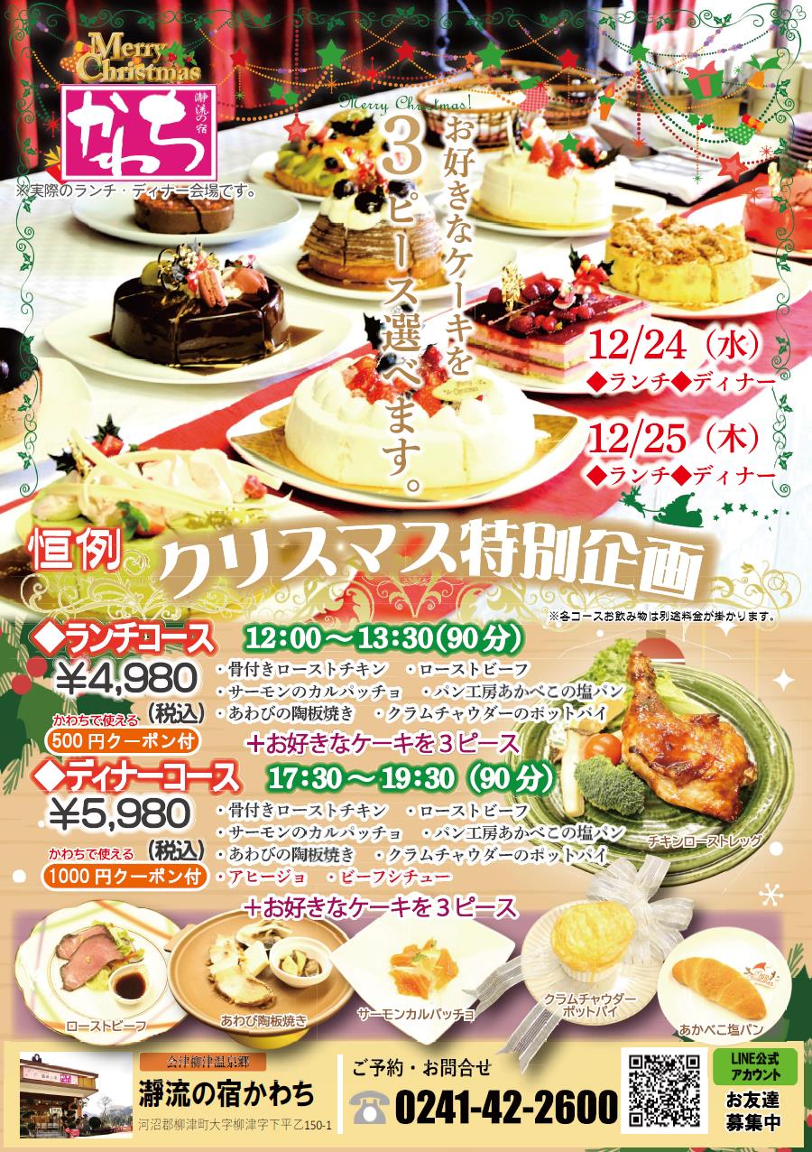 【柳津町】「瀞流の宿かわち」クリスマス特別ランチ・ディナー」のご案内