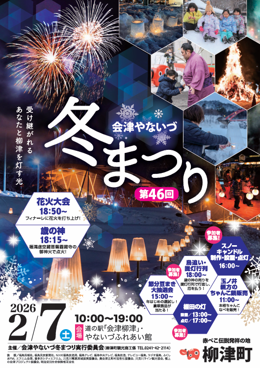 柳津町の冬の一大イベント「第46回会津やないづ冬まつり」が開催されます。