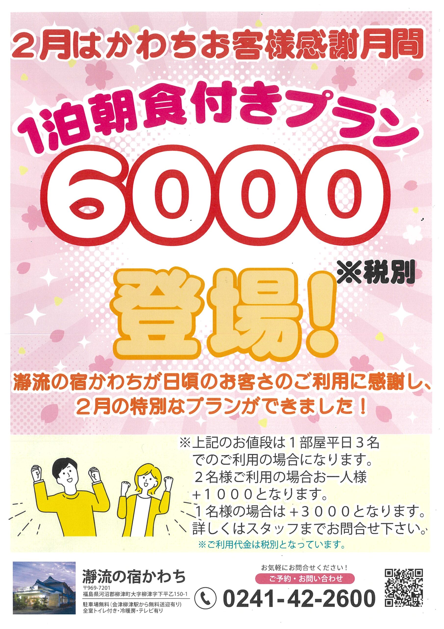 【柳津町】「瀞流の宿かわち」2月限定・お客様感謝プランのご案内