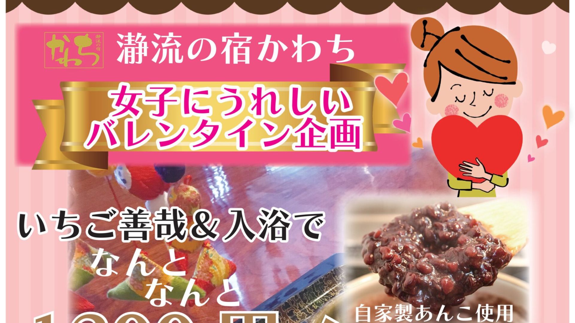 【柳津町】「瀞流の宿かわち バレンタイン特別企画」いちご善哉&入浴セットでほっとひと息