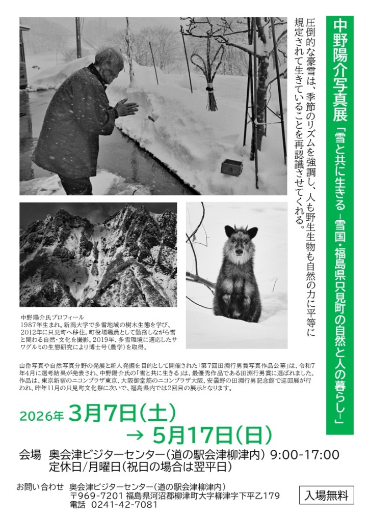 3月7日(土)から5月17日(日)まで、「中野陽介氏写真展『雪と共に生きる-雪国・福島県只見町の自然と人の暮らし-』」を開催します!
