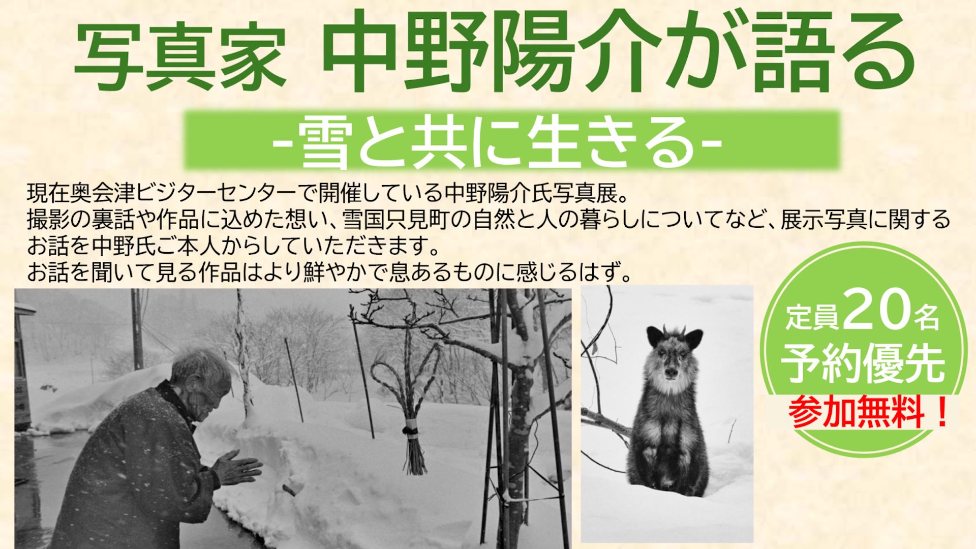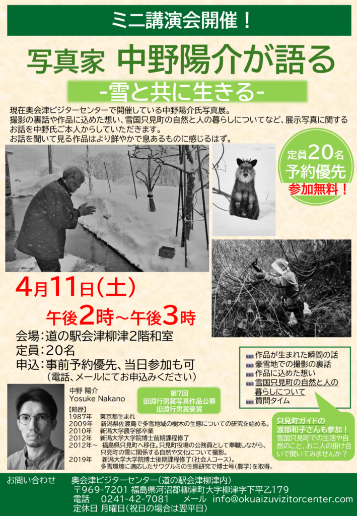 【柳津町】4月11日(土)追加イベント開催決定!「写真家中野陽介が語る-雪と共に生きる-」